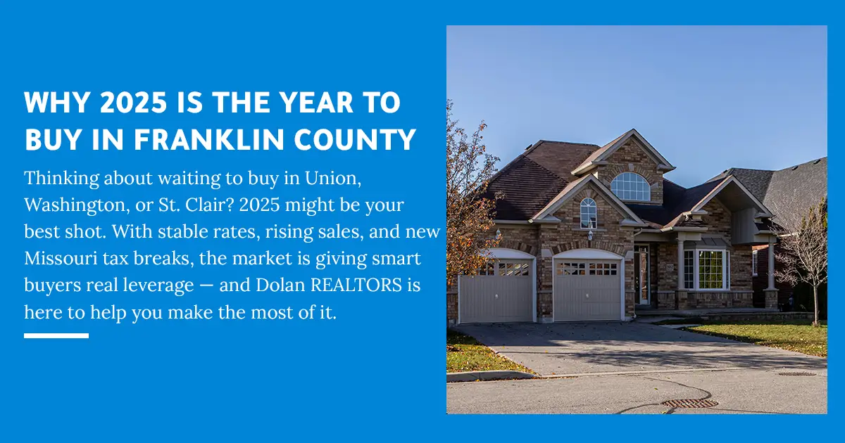 Someone asked me recently: “Should I wait another year to buy a home around Union, Washington, or St. Clair?” My answer? 2025 is shaping up to be one of the most opportune windows in recent memory—if you move smart. At Dolan REALTORS, we track local metrics daily. Here’s what we’re seeing, and how you can act ahead while the market still gives you leverage.