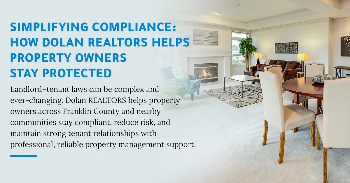 In today’s property management environment, staying compliant with landlord–tenant laws and local regulations is essential to protecting your investment. Requirements covering leasing, notifications, maintenance standards, fair housing, and tenant communication can change over time—and keeping up with them can feel overwhelming. With deep local experience in Franklin County and surrounding Missouri communities, Dolan REALTORS helps property owners stay aligned with regulatory requirements while maintaining smooth and respectful tenant relationships.