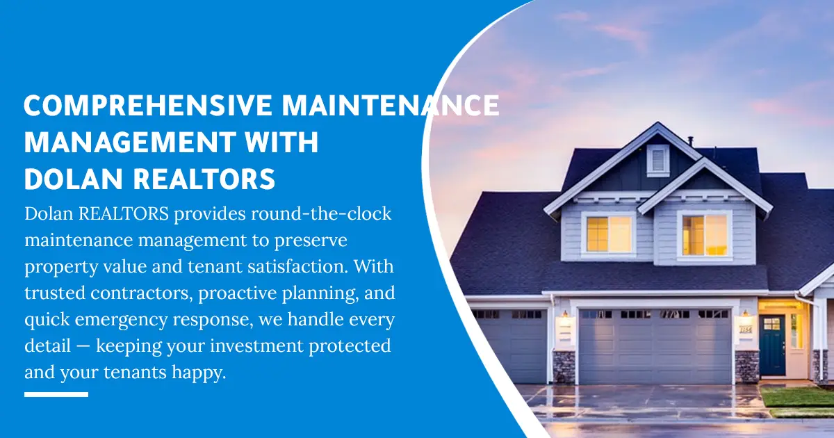 Discover how Dolan REALTORS offers comprehensive maintenance management with 24/7 support and trusted contractor coordination to protect your property's value and enhance tenant satisfaction. Proper maintenance is a cornerstone of successful property management, yet many property owners struggle to keep up with timely repairs and upkeep. The consequences of delayed maintenance ripple through property value depreciation, tenant dissatisfaction, and lost income. Understanding these challenges underlines why effective maintenance management is essential for every property owner.